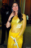 Gorgeous Kareena Kapoor in Yellow Saree at Tusshar kapoor's Birthday Bash — Seductive Kareena Kapoor does look lovely in her cheery yellow transparent saree at Tusshar Kapoor’s celebrations with his birthday bash which was organized at his place. Love the whole look of Kareena and i wont be surprised if it is Manish Malhotra. Showing the world just how the traditional Indian costume should be worn. Check out the sizzling hot images.